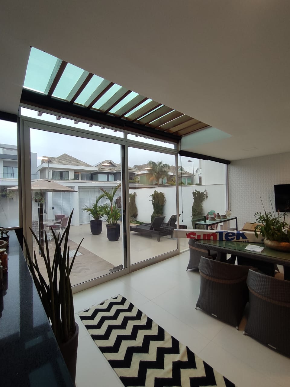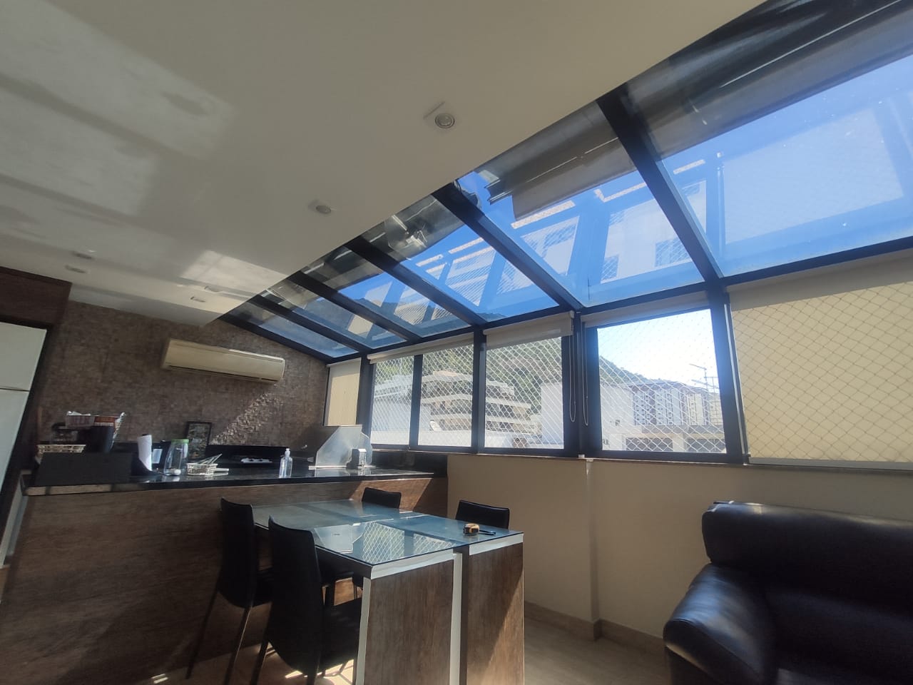 Temos películas com alta redução de calor, tirando claridade do ambiente, dando mais conforto térmico e aconchego.