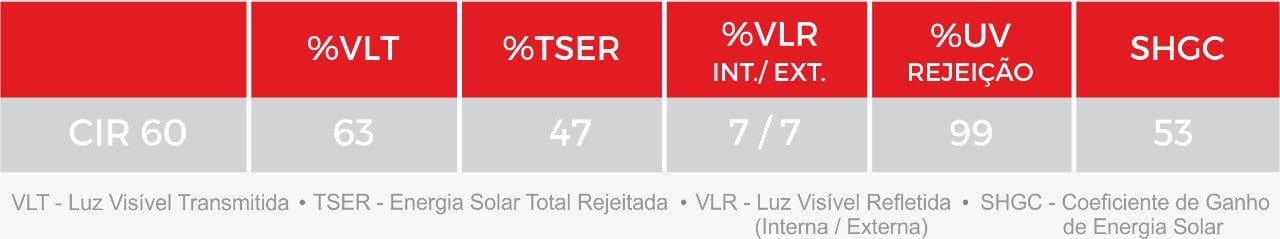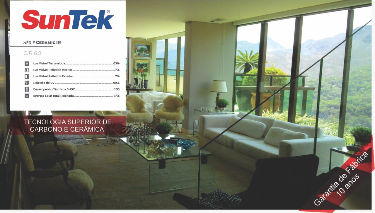 Película não metálica com tecnologia nano-híbrida de carbono e cerâmica proporcionando excepcional rejeição de calor e infravermelho.